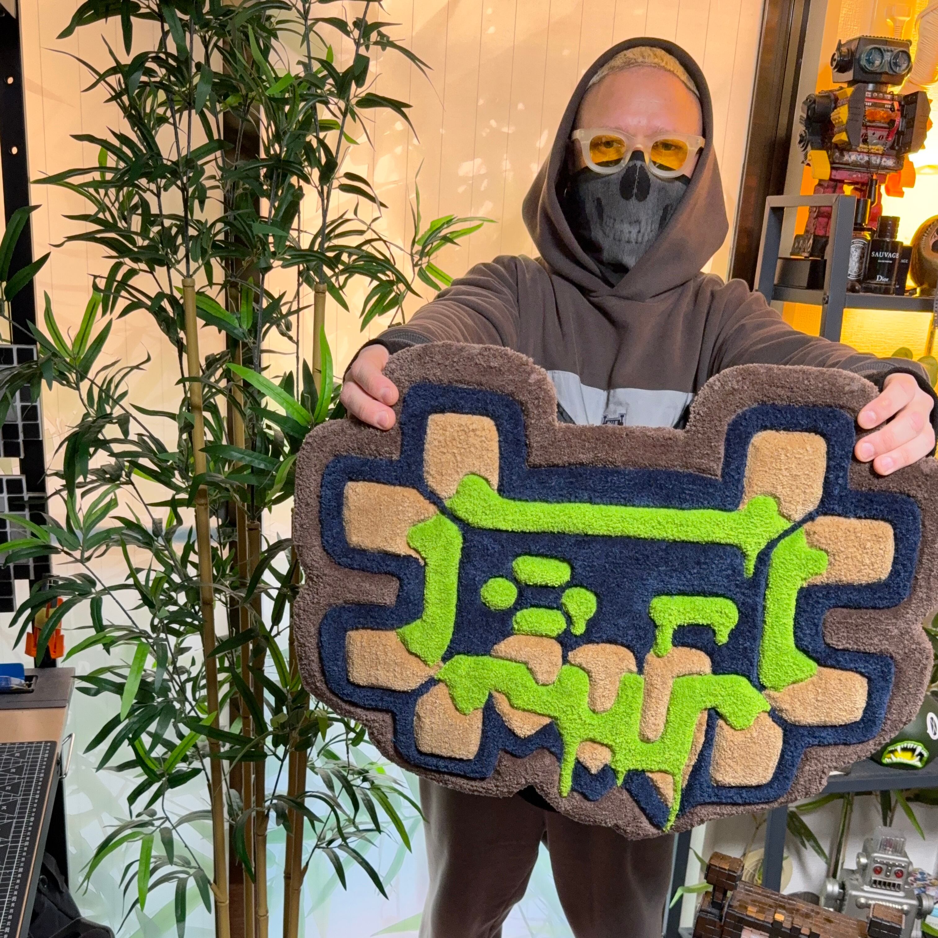 Designed and handcrafted by the artist bones2boil, this rug is created entirely by hand — from concept and original design to tufting, carving, and final finishing — in the artist’s studio in Japan.